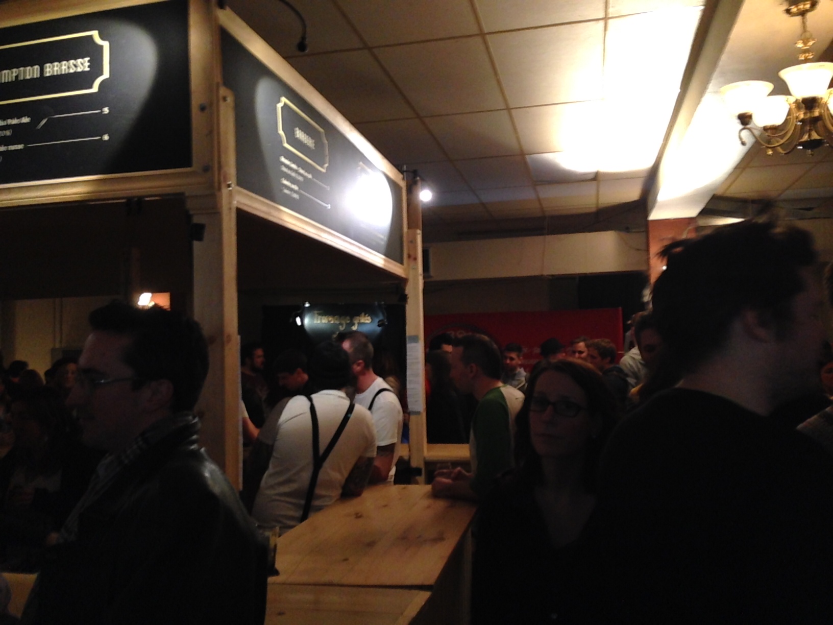 Il y avait une belle ambiance ce vendredi, quand je suis allé faire un tour à l’église St-Enfant-Jésus. L’entrée est de 10$ ou 15$ avec un verre en vitre officiel. Les gens sont sympas, les gars connaissent leur bière. Mais tout de suite, il y a un bémol, malgré la très grande qualité des produits, les prix sont déraisonnables! Le prix d’un verre de dégustation, c’est-à-dire le quart ou le tiers de ton (petit) verre, coûte le prix d’une bière dans un bar!