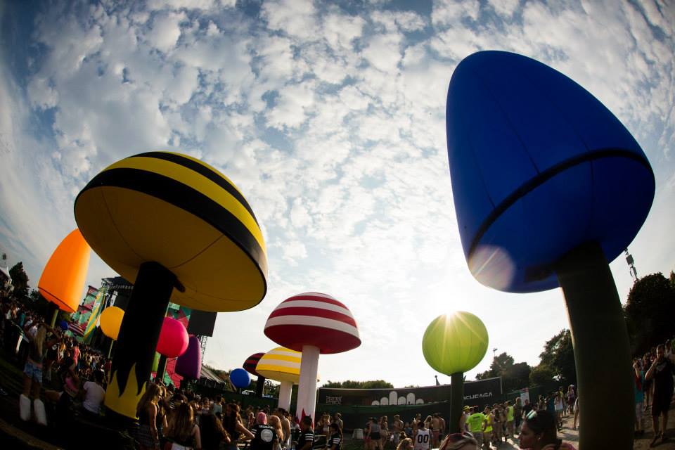 ÎleSoniq a créé un monde fantasmagorique, avec d’immenses champignons gonflables et beaucoup d’éléments très colorés.