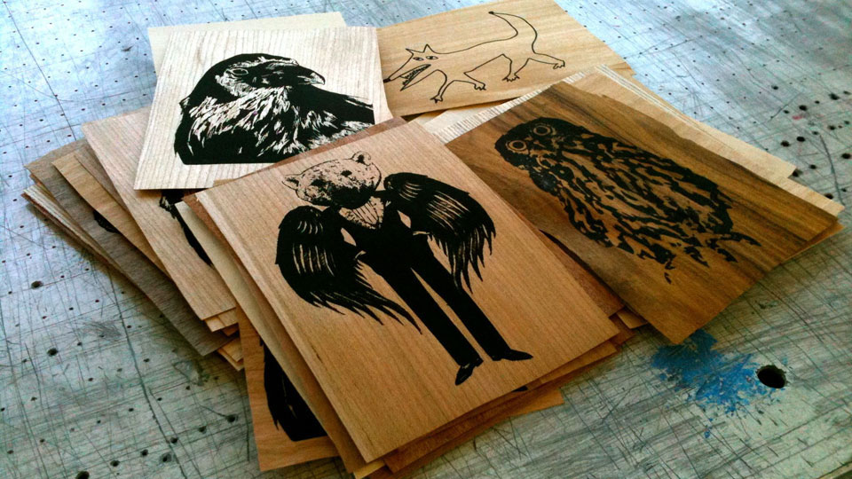 J’ai continué ma visite jusqu’à la table de Sophie Joubarne qui présentait Unik Printshop, des magnifiques sérigraphies sur bois, originales et merveilleuses.